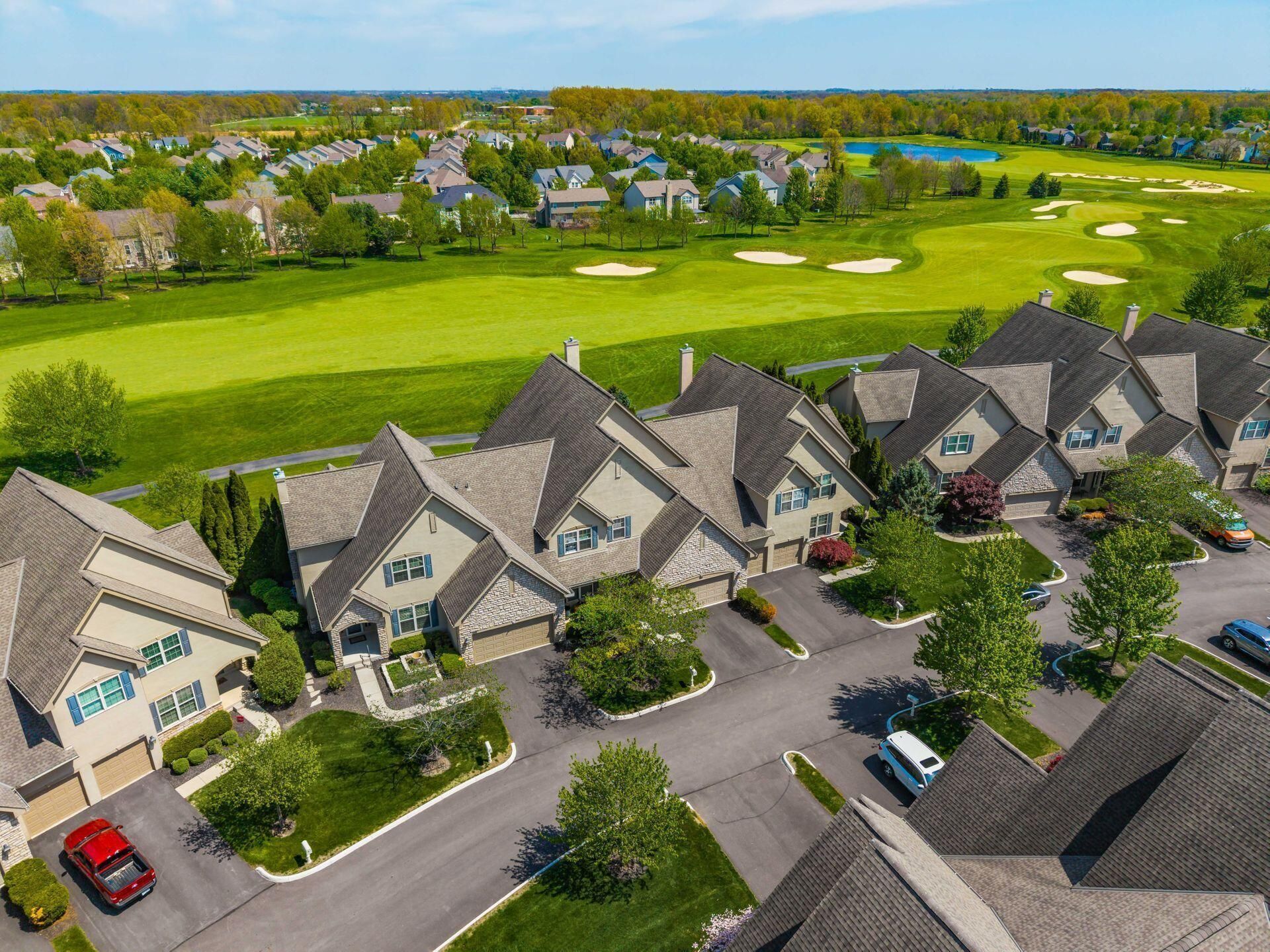 OPEN Sat 5/2, 12-2 PM! Welcome to effortless golf course living in Powell--perfectly positioned just moments from Kinsale Golf & Fitness Club. Overlooking Hole #1 and the scenic walking path, this beautifully updated condo delivers stunning views, elevated finishes, and a lifestyle that feels like a getaway every day.Imagine starting your mornings with a warm cup of coffee on the patio, soaking in peaceful golf course views as the day begins-your own private retreat right at home.Inside, gleaming hickory hardwood floors flow throughout the main living spaces, setting the tone for the home's thoughtful updates. The gourmet kitchen is both stylish and functional, featuring granite countertops, stainless steel appliances, a gas range, bar seating, a spacious dining area, and a walk-in pantry. A butler's pantry adds even more versatility with a built-in wine fridge and plumbing in place--perfect for a future first-floor laundry conversion.The dramatic 2-story great room is filled with natural light and anchored by a cozy gas fireplace, creating an ideal space for both entertaining and everyday living. The first-floor primary suite offers a true retreat, complete with a spa-like ensuite featuring a soaking tub, tiled shower, dual sinks with built-in vanity, and a generous walk-in closet.Upstairs, you'll find oversized secondary bedrooms, a full bath, a flexible loft, and additional space currently used as a home office. The finished lower level expands your living options with a rec room, bar, movie projector, built-in surround sound, extra soundproofing, full bath, and ample storage.Outdoor living is just as impressive-whether relaxing on the charming front porch or unwinding on the stamped concrete patio overlooking the course and walking path. The community pool is just steps away, and a direct neighborhood path makes accessing the country club incredibly convenient.Opportunities like this are rare in this sought-after community within the Olentangy School